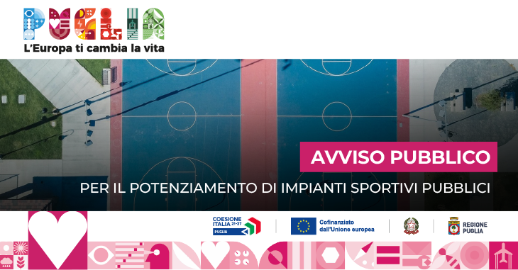 L’Avviso, pubblicato sul Bollettino Ufficiale della Regione Puglia n.84 del 20/10/2025, è adottato a valere sul PR Puglia 2021-2027 - Priorità 8, Azione 8.2 - Sub azione 8.2.1: ”Interventi per la realizzazione di impianti sportivi finalizzati all’inclusione”.