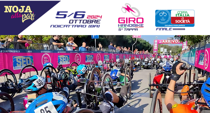 La Scuola Ciclismo Franco Ballerini, in collaborazione con SEO a.s.d. ed il Comune di Noicattaro (Ba), organizza a Noicattaro, il 5 e 6 ottobre 2024, la 5° TAPPA DEL GIRO HANDBIKE, gare nazionali per atleti disabili riservata alle categorie: Maschile / Femminile H1, H2, H3. H4, H5.